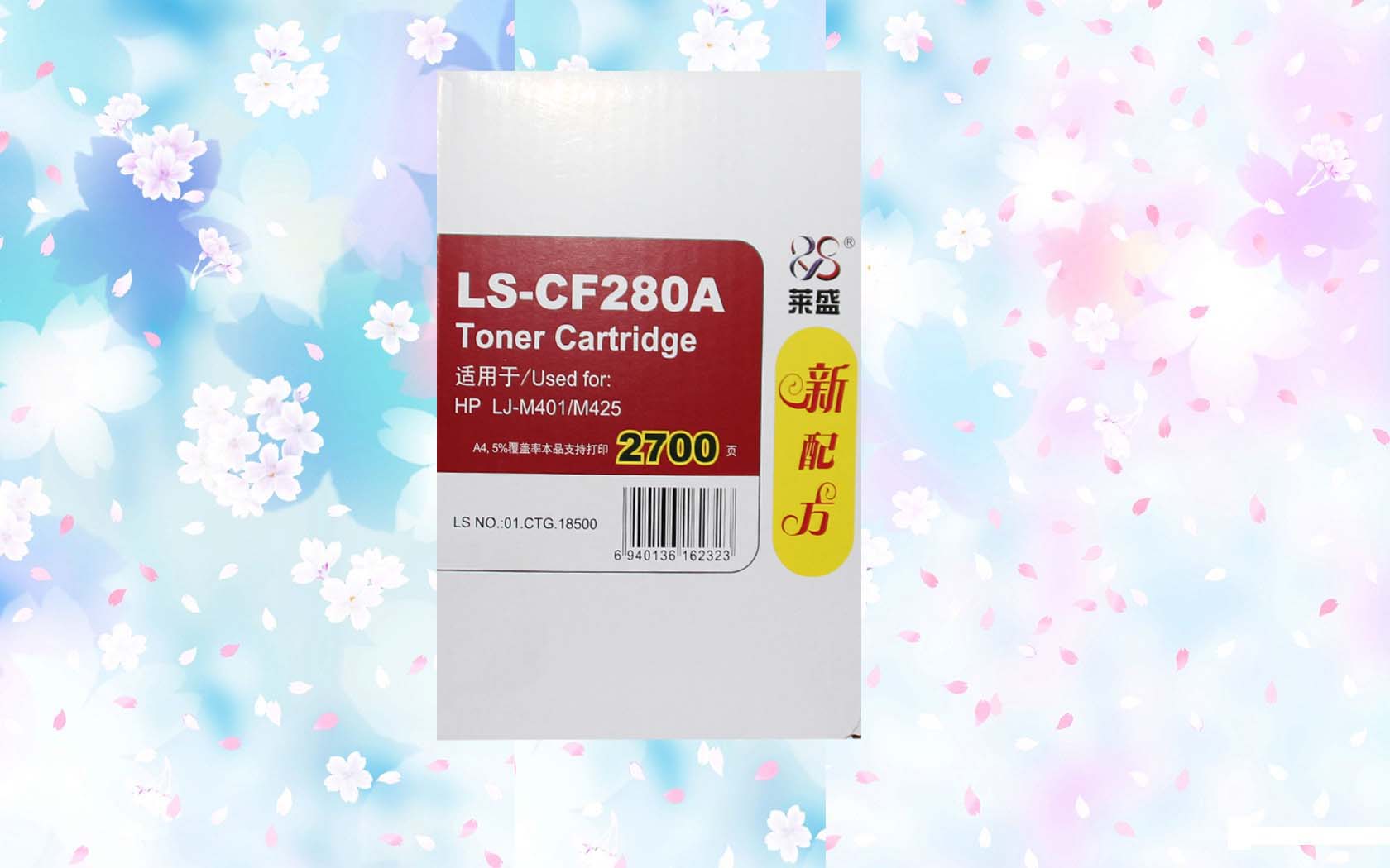 品牌萊盛打印頁數(shù)2700頁型號LS-CF280A打印幅面A4(5%覆蓋率)顏色黑色保質(zhì)期18個月適用于惠普HP M401d/M401n/M401dn, MFP M425dn/M425dw打印機