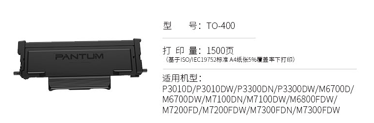 奔圖(PANTUM)TO-400黑色粉盒((適用于P3010/P3300/M6700/M6800/M7100/M7200系列)