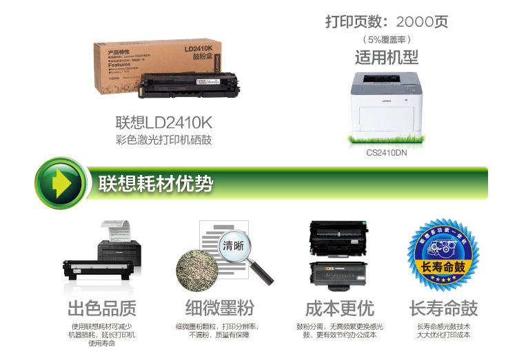 當(dāng)前位置: 首頁 > 辦公耗材 > 硒鼓、墨盒(含色帶) > 鼓粉盒 > 聯(lián)想(Lenovo)原裝 黑色鼓粉盒LD2410K 適用于CS2410DN機(jī)型